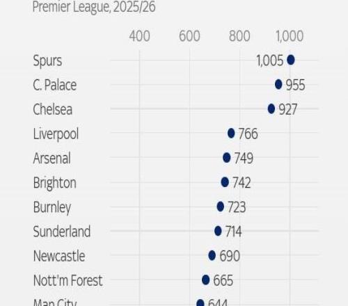 据天空体育的统计报道:热刺球员本赛季因伤病和疾病累计缺阵天数已达1005天,这一数字在英超所有球队中高居榜首...